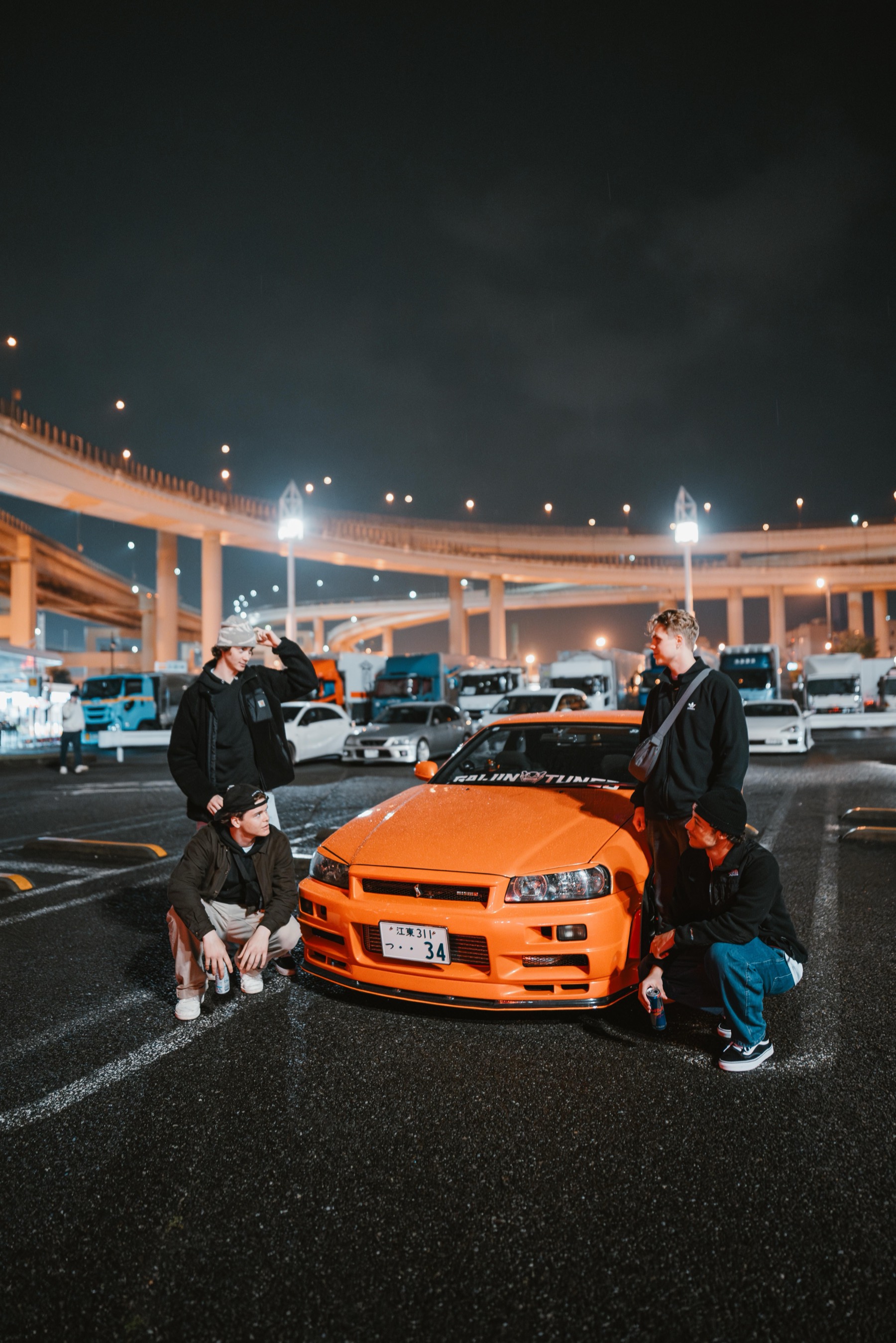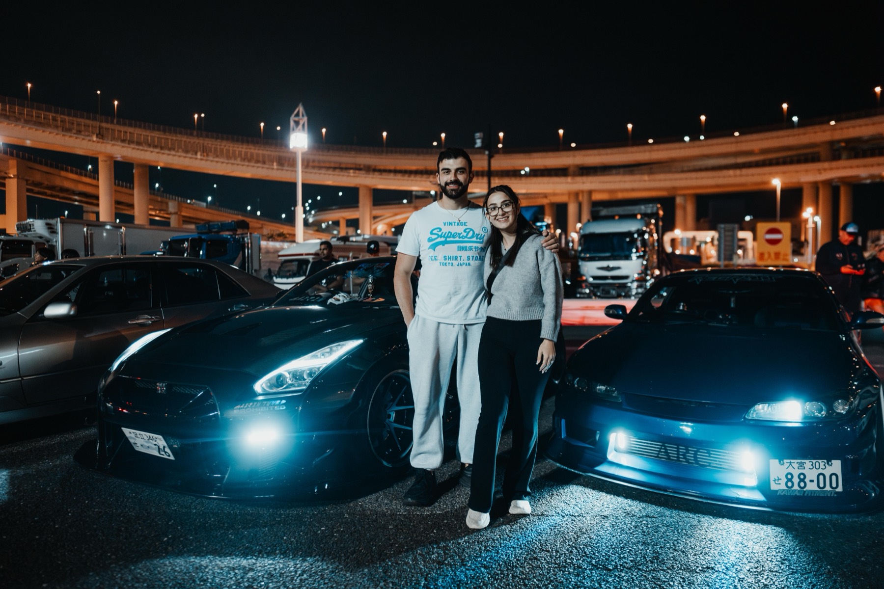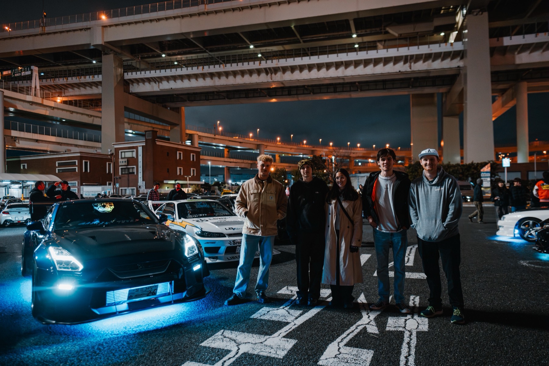 JDM cars · Night views · Shuto Expressway vibes · Car meet atmosphere · Photo-friendly